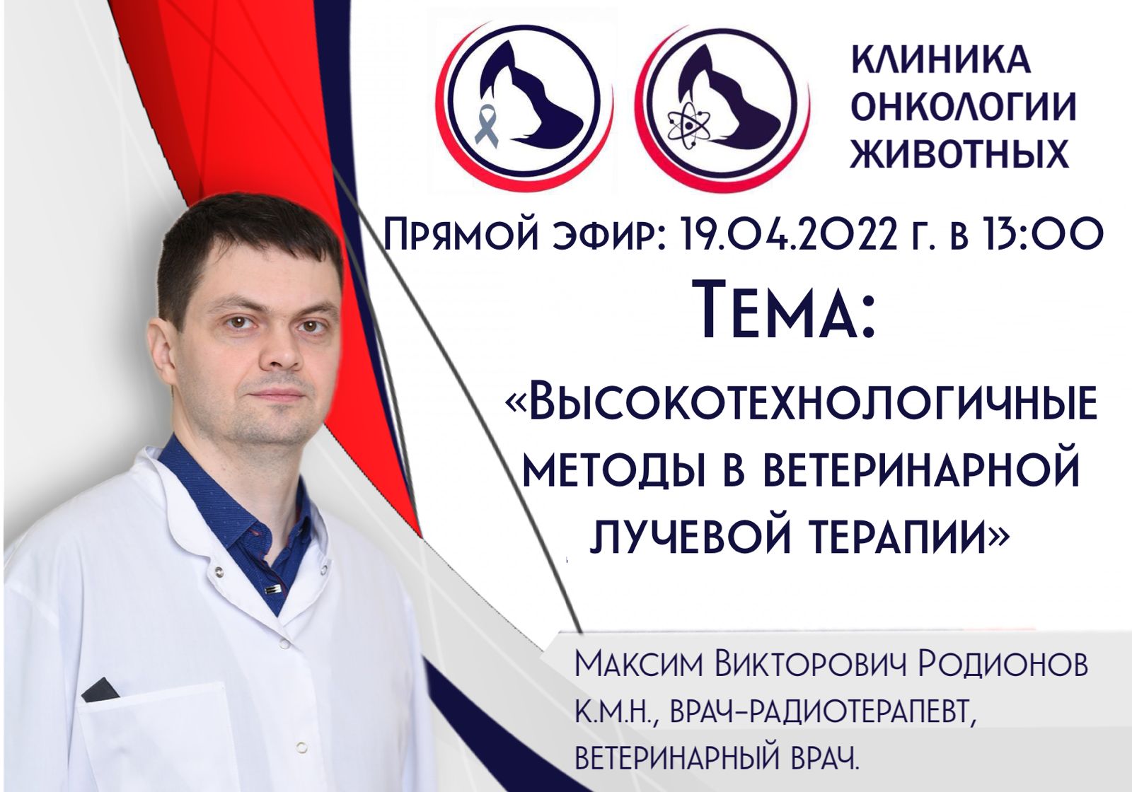 19 апреля в 13:00 приглашаем вас присоединиться к прямому эфиру по теме «Высокотехнологичные методы в ветеринарной лучевой терапии».